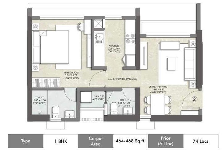 | 1 BHK | 464 - 468 sq.ft. | On Request | On Request |